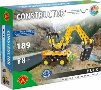 Aus der Constructor-Reihe kommt hier der Bagger „Hulk“ aus dem Hause Alexander Toys. Das Modell lässt sich selbst zusammenbauen und besteht aus Metallteilen unterschiedlicher Größe und Form. Die ergänzenden Kunststoffteile unterstreichen das optische Design. Über den Spiel- und Bauspaß hinaus fördert das Modell auch handwerkliches Geschick und Geduld.