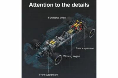 Formel EBaue den ultimativen CaDA Bricks Formula E Rennwagen mit ausgeklügelter Aufhängung und einem nachgemachten Motor, der mit dem funktionalen Lenkrad verbunden ist.FeaturesBist du auf der Suche nach einem Adrenalinkick? Sehnen Sie sich nach Nervenkitzel? CaDA Formula E ist für echte Fans von Formel-Rennwagen gedacht. Das Modell ist aus hochwertigen Materialien gefertigt und verfügt über ein ausgeklügeltes Aufhängungssystem, einen nachgemachten Motor mit beweglichen Kolben, der mit dem funktionellen Lenkrad verbunden ist. Mit einem bis ins Detail ausgearbeiteten Außendesign und einer federbelasteten hinteren Motorabdeckung, die sich aufklappen lässt, ist dies ein Hochgeschwindigkeitsmodell, das dich stundenlang unterhalten wird. Für zusätzlichen Nervenkitzel kannst du deinen Rennwagen sogar motorisieren! Mach dich also bereit, mit dem Formel-E-Rennwagen in einen rasanten Fahrspaß zu starten!Technische DatenStück: 1667Maßstab: 1:8Optionale MotorisierungSchwierigkeitsgrad: mittelAbmessungen: 596 x 236 x 138mmMaßstab: 1:8Altersgruppe: 14+Lieferumfang- 1x Bausatz „Formel-Rennwagen“ (1667 Teile)- 1x Bauanleitung