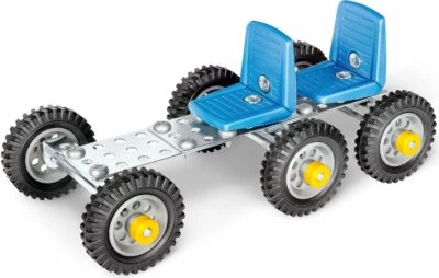 Mit dem Metallbaukasten C06 lassen sich mindestens 8 verschiedene Modelle bauen. Mit über 270 Teilen, dem passenden Werkzeug und verschiedenen mechanischen Funktionen ist dieses pädagogisch wertvolle Spielzeug ideal für kleine Schrauber. In einer bebilderten Anleitung wird jeder Schritt detailliert beschrieben. Wie in einer richtigen Werkstatt entsteht Schritt für Schritt die Konstruktion. Die Stahl-Winkel, Bleche und Streben werden mit Schrauben und Muttern verbunden. Nach Fertigstellung eines Bauwerkes lässt sich die Konstruktion einfach wieder zerlegen. Somit ist unbegrenzter Spielspaß also garantiert! Durch die Metallbaukästen von eitech wird spielerisch die kindliche Entwicklung gefördert: Während Kinder bauen und konstruieren, trainieren sie Kreativität, motorische Fähigkeiten und logisches Denken.