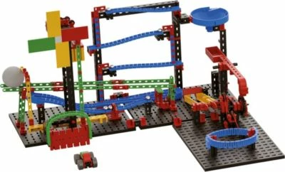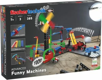 Der Baukasten ADVANCED Funny Machines ist ein witziges, buntes Einsteiger Set für junge Konstrukteure ab sieben Jahren zum Thema Kettenreaktionen.