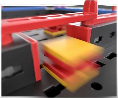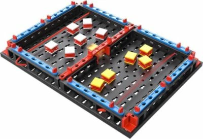 Mit diesem coolen Set von Fischertechnik kommt ein 102-teiliges Spielvergnügen in die Kinderzimmer. Das Spiel kombiniert Geschicklichkeit und Glück und lädt zu coolen Battles ein. Wer schafft es als erster, das eigene Spielfeld leer zu räumen, bevor es der Gegenseite gelingt? Hierfür heißt es Gummi spannen und die Spielsteine durch das Tor in das gegnerische Feld schießen.