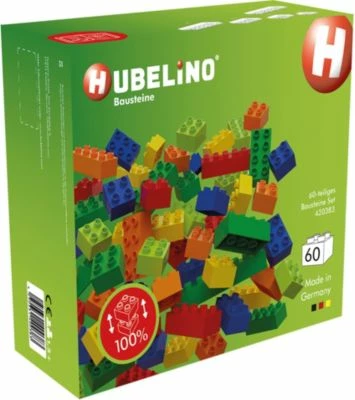 Mit dem Bausteine Set von Hubelino erhältst du 60 verschiedengroße Bausteine in den Farben grün, rot, blau, gelb, orange und hellgrün. Die Bausteine sind kompatibel mit gängigen Baustein-Systemen anderer Hersteller und werden in Deutschland gefertigt. Geeignet für Kinder ab 1,5 Jahren.