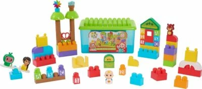 Mit 53-teilige Blockset kommt toller Spielespaß für kleine Melonen-Fans und Baumeister*innen. Die großen Blöcke eignen sich perfekt für kleine Hände und die 6 Spielefiguren laden dazu ein, Geschichten zu erzählen. Die Klötzchen können nach Herzenslust gestapelt und kombiniert werden und ganz nebenbei dürfen auch die ersten Farben erkannt und benannt werden.