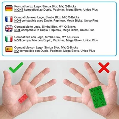 – 100% KOMPATIBEL: Passend zu Lego, Sluban, Papimax, Q-Bricks, MY, Sluban, Wilko Blox, BanBao, Enligthen Brick, Slick Bricks, Wange, Kazi, Shopkins, Block Tech, Cobi, Best Lock, Built to Rule, Kreo, Oxford, C6.