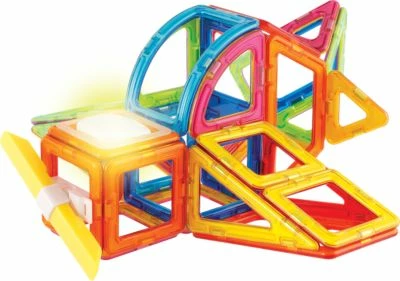 Das MAGFORMERS Dynamic Flash Set beinhaltet tolles, lehrreiches Magnet-Konstruktionsmaterial zum spielerischen Erlernen von dreidimensionalen, geometrischen Formen. Kinder können immer und immer wieder mit diesem Set spielen. Verschiedene 3D-Modelle können nach Bildern und Anleitung gebaut oder auch selbst geschaffen werden. Das Set besteht aus 54 Einzelteilen und beinhaltet einen Propeller und ein Leuchtelement.