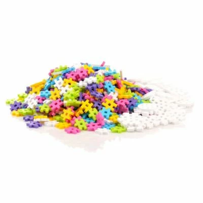Inhalt: 370 Basic Bausteine Pink, 12 Rad-Elemente, 12 6-Eck-Elemente, 6 Stäbe, in 6 Farben sortiert
