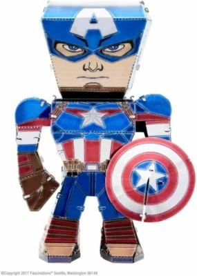 Hier kommt der unschlagbare Marvel Avenger Captain America, der als 3D-Konstruktionsbausatz von Metal Earth in keiner Sammlung fehlen darf! Der detailgetreue und lasergeschnittene Bausatz besteht aus Metallkarten mit dem Format 11 x 11 cm, wobei die einzelnen Teile leicht herausgedrückt und zusammengesetzt werden können.