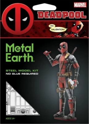 Besonders frech und gleichzeitig cool – hier kommt Marvels Deadpool als lasergeschnittener, detailgetreuer 3D-Konstruktionsbausatz von Metal Earth! Dabei werden einzelne Teile aus den Metallplatten herausgetrennt und, ohne Klebstoff benutzen zu müssen, mithilfe der Anleitung zusammengesetzt. Er eignet sich für fortgeschrittene Bastler, die ein wenig Vorerfahrung mit Puzzle-Bausätzen haben.