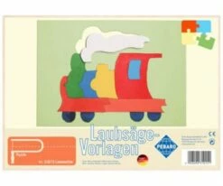 • Kreative Vorlage aus Holz bedruckt mit dem Motiv Lokomotive zum Aussägen mit der Laubsäge