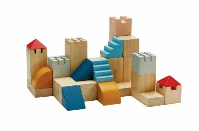 Baue ein Schloss oder eine Stadt und lasse der Kreativität freien Lauf! Enthält 40 Teile mit zehn vrschiedenen Formen. Das Set enthält zwölf farbige und 18 naturfarbene Blöcke.