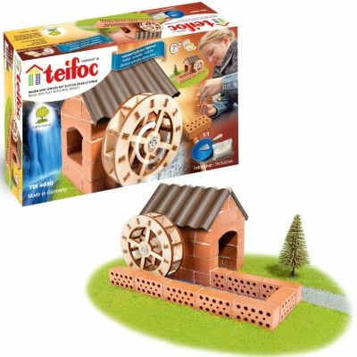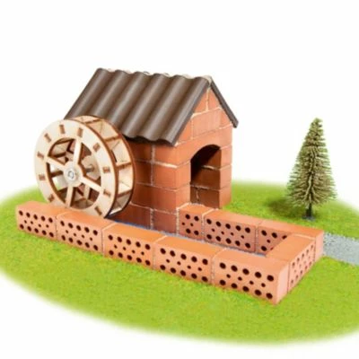Bauen mit echten Ziegelsteinen aus diesem Baukasten – einfach mit Wasser den Mörtel anrühren und mit der beiliegenden Mörtelkelle auf die Ziegelsteine verstreichen. Die Ziegelsteine gut andrücken und den überschüssigen Mörtel mit der Kelle abstreichen. Fertig ist dein teifoc-Gebäude.